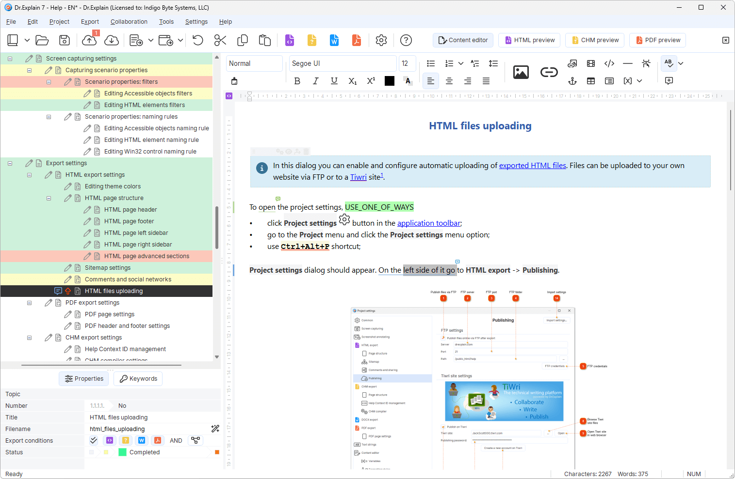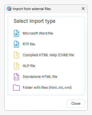 ¡Así que usa Dr.Explain! Importa toda la documentación existente de varias fuentes en él, y luego trabaja con un solo proyecto estructurado y publica manuales de usuario en cualquier formato según sea necesario.