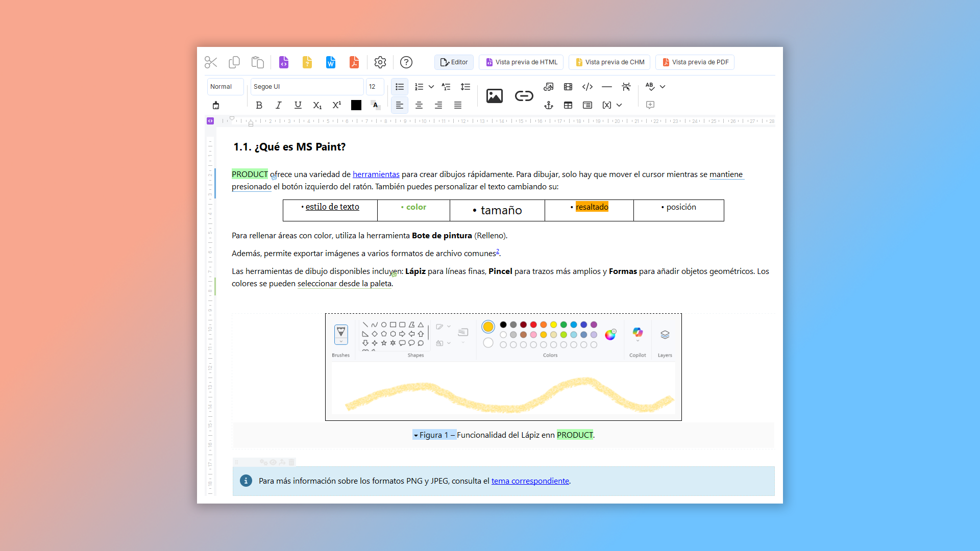 Estas herramientas le ayudarán a trabajar de manera eficiente, manteniendo la coherencia y el diseño profesional de su documentación de usuario.
